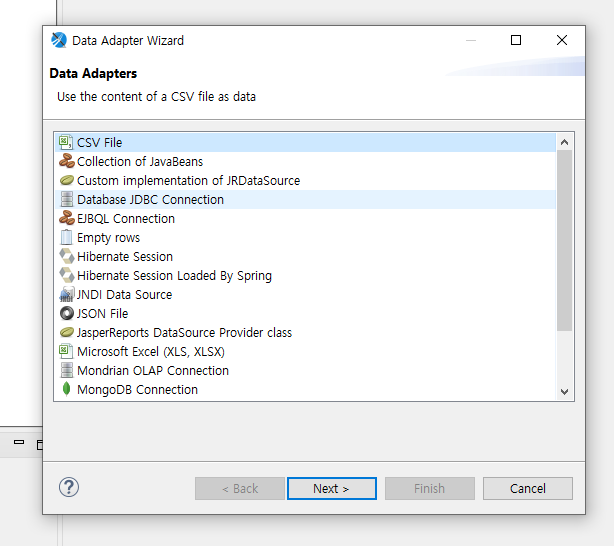 2. 데이터 어댑터 종류 선택 후 Next 클릭