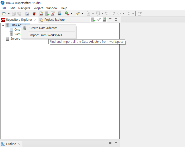 1. Repository Explorer 탭에서 Data Adapters 우클릭 후 Create Data Adapter 클릭